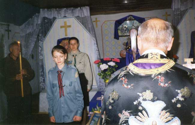 Пластуни ходили до церкви і тримали стійку біля плащаниці. Це були: пл.