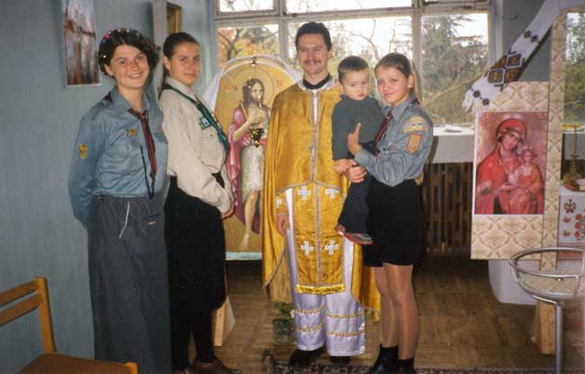 Пластуни: ст. пл. Зіна Беланюк, пл. розв. Саша Єрмошкіна, пл. уч.