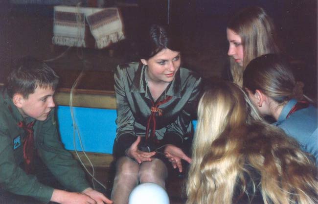 На фото Зінаїди Беланюк: момент обговорення відповіді командою НСОУ "Пласт".